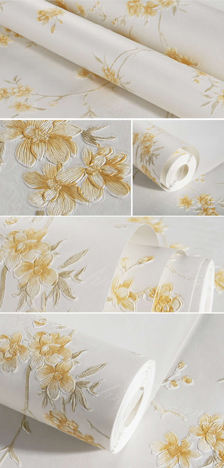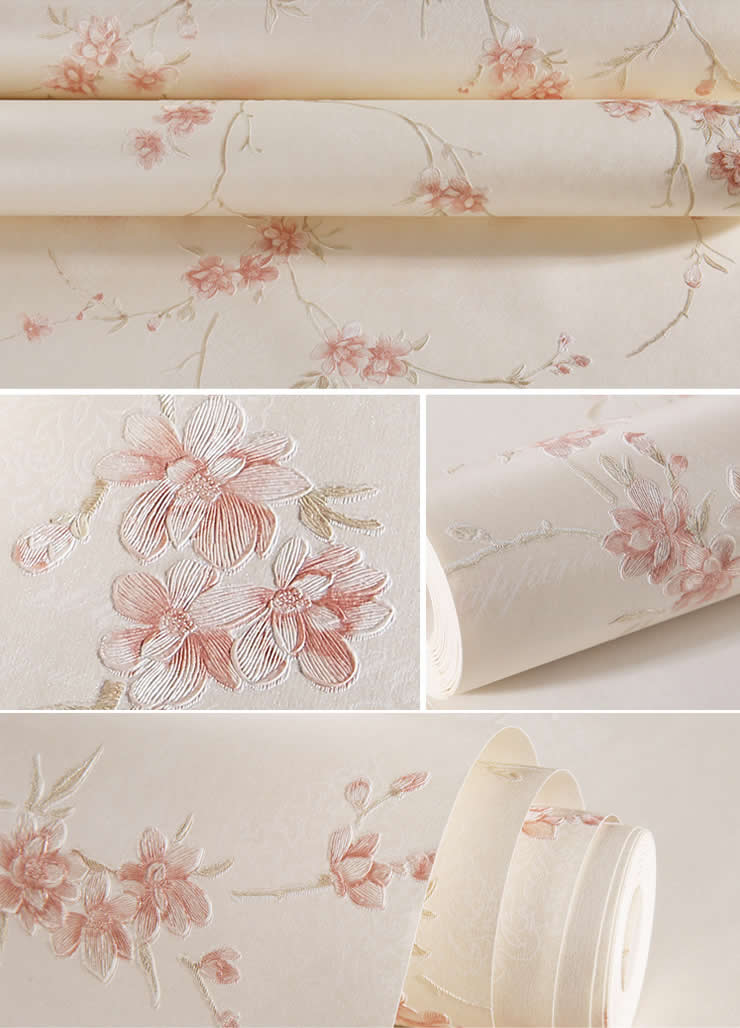 蝴蝶花墙纸田园风格家用墙纸小碎花小清新花朵欧式卧室客厅浮雕温馨韩式壁纸